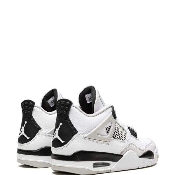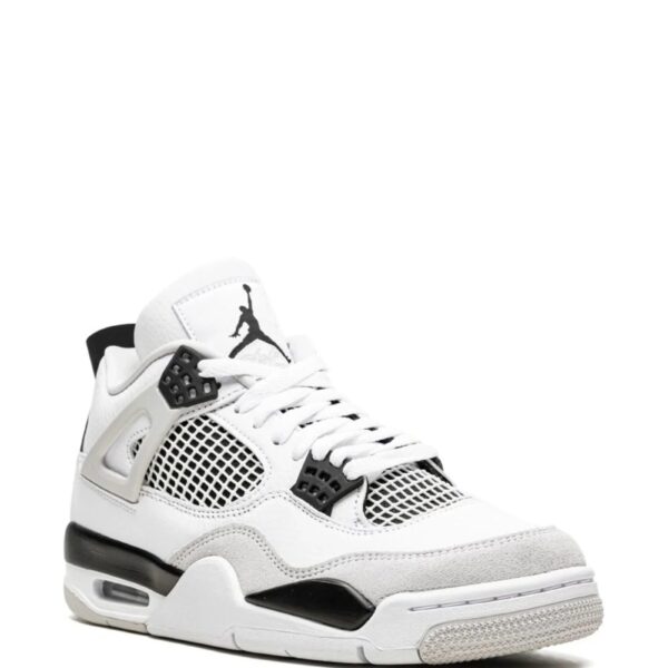 A basketball silhouette, the Air Jordan 4 Retro pairs contemporary with old-school aesthetics. Presented here in a white, black and grey colourway it is detailed with mesh panelling and supported with signature Air cushioning underfoot.