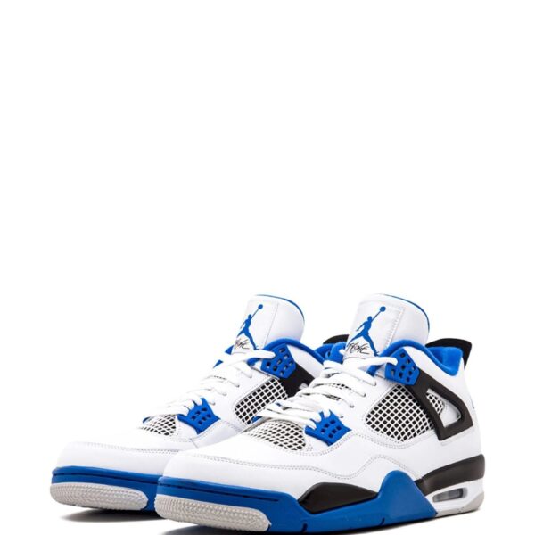 Supplied by a premier sneaker marketplace dealing with unworn, already sold out, in demand rarities. Each product is rigorously inspected by experienced experts guaranteeing authenticity. Rev up your engines. Crafted from white, game royal blue and black leather, these Air Jordan 4 Retro motorsport from Jordan are sure to put you in the fast lane, thanks to their comfortable silhouette and flat rubber sole. On your marks. Featuring an almond toe, a lace-up front fastening, a brand embossed tongue, a branded insole, branded heel counter, a rubber sole and grid mesh panels.