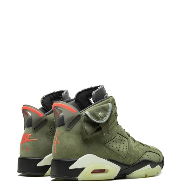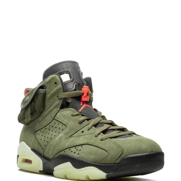 Supplied by a premier sneaker marketplace dealing with unworn, already sold out, in demand rarities. Each product is rigorously inspected by experienced experts guaranteeing authenticity. The Travis Scott x Air Jordan 6 marks the third time the world famous rapper and Jordan Brand have partnered on an Air Jordan. Scott revisits earth tones as the central theme of the “Cactus Jack” Air Jordan 6, just as he did with his first collaboration on both the high and low top Air Jordan 1 models. The upper part of the sneaker is comprised of an olive-based nubuck material with black detailing and contrasting red accents. An added stash pouch on the collar is reminiscent of the kinds of pockets that can be found on the side of cargo pants and military gear. A black mudguard and Sail midsole with glow-in-the-dark translucent outsole round of the rest of the impressive design. 3M detailing is displayed on the red Nike Air and Cactus Jack branding. Release date: September 14th, 2019.