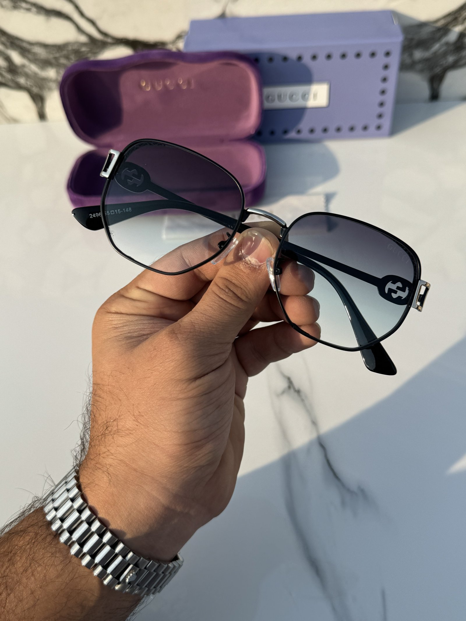 Branded Sunglasses 2496_silver_green(With Original Kit)