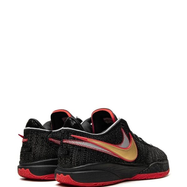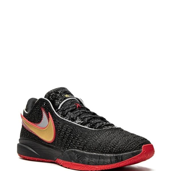 This new colourway of LeBron’s 20th signature sneaker comes in black, red and gold-tone hues. This pair features a knitted upper decorated with double-stacked Swooshes on the lateral side and is finished with a midsole with a graphic print and a multidirectional rubber outsole for support.