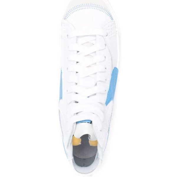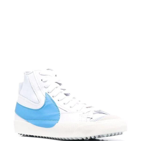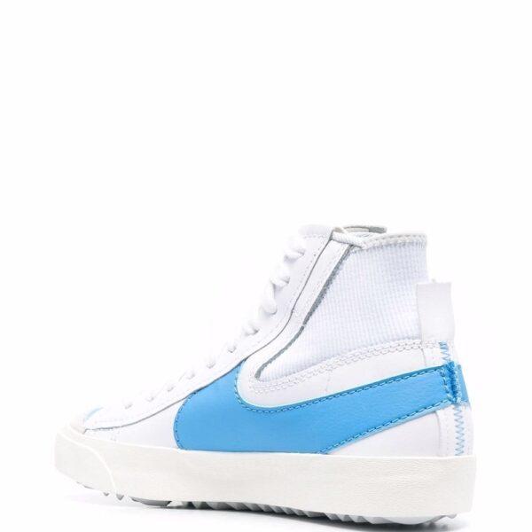 White/university blue sail leather logo-print high-top sneakers from NIKE featuring panelled design, elasticated panelling, contrast stitching, signature Swoosh logo detail, round toe, front lace-up fastening, logo patch at the tongue, branded insole and flat rubber sole.