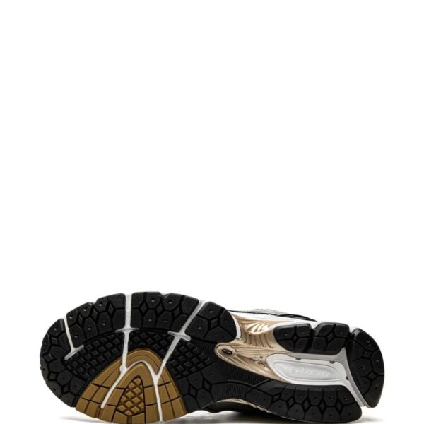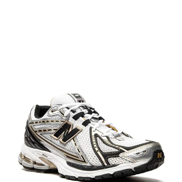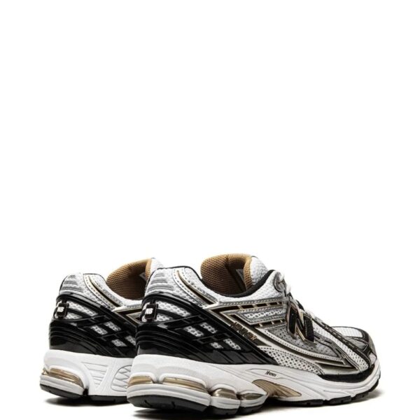 New Balance’s M1906RB features a white mesh base topped with sleek synthetic overlays in gold, black, and silver. This model has a low-top silhouette enhanced with the usual ‘N’ logo on the sides and sits atop a rubber sole.
